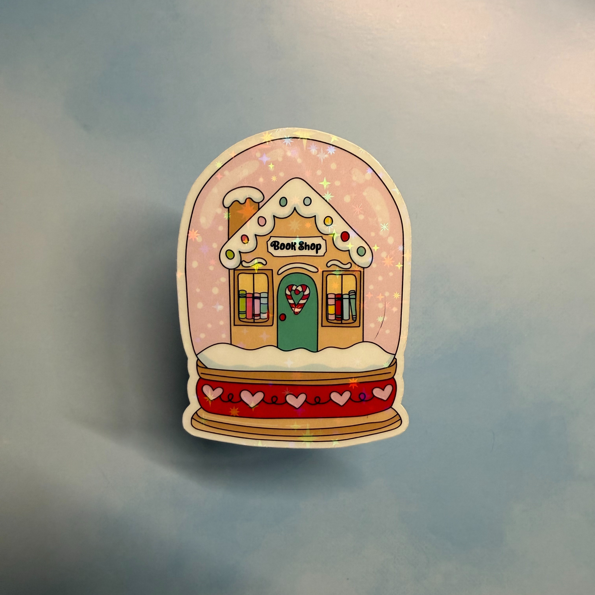 Cozy Bookshop Snow Globe – Holographic Sticker