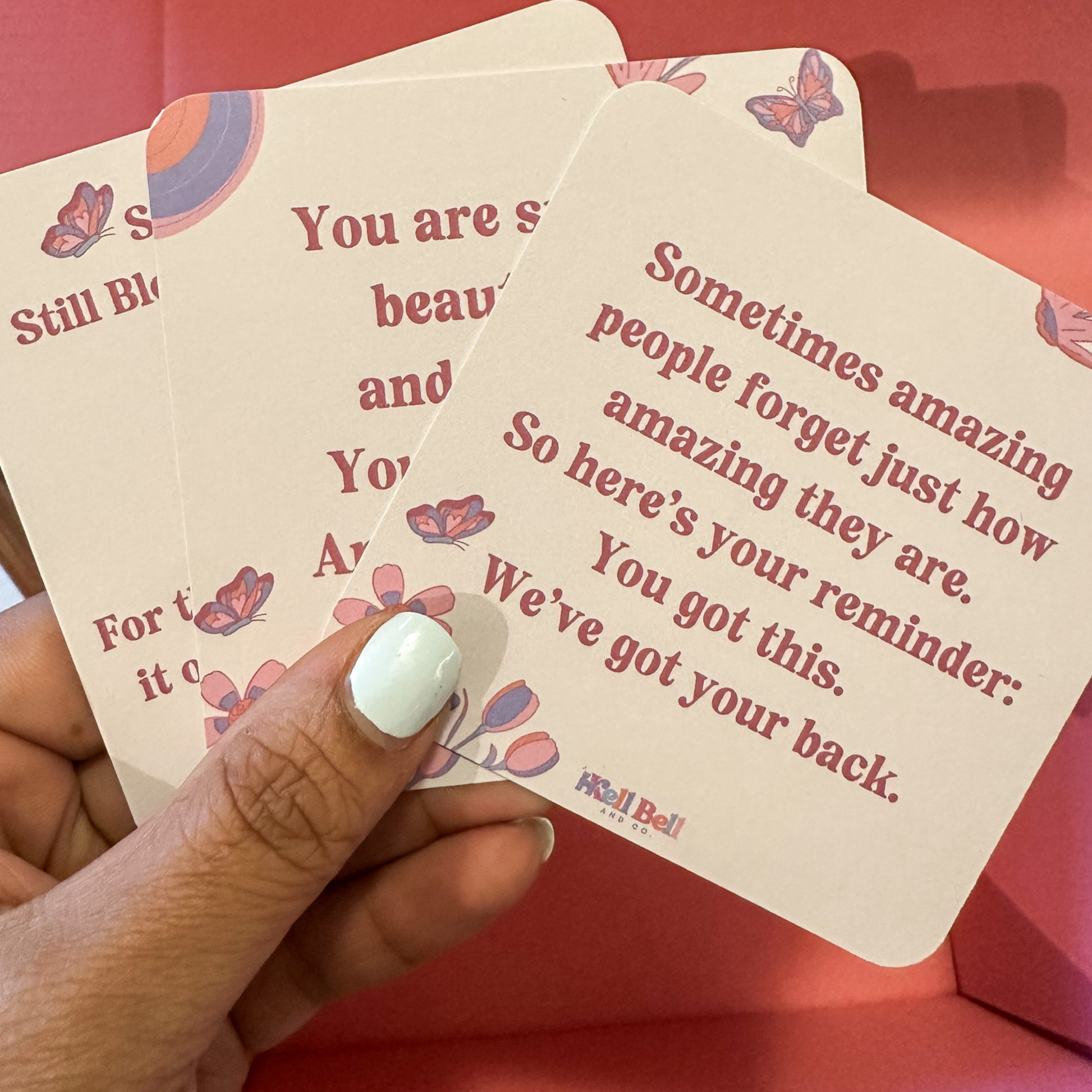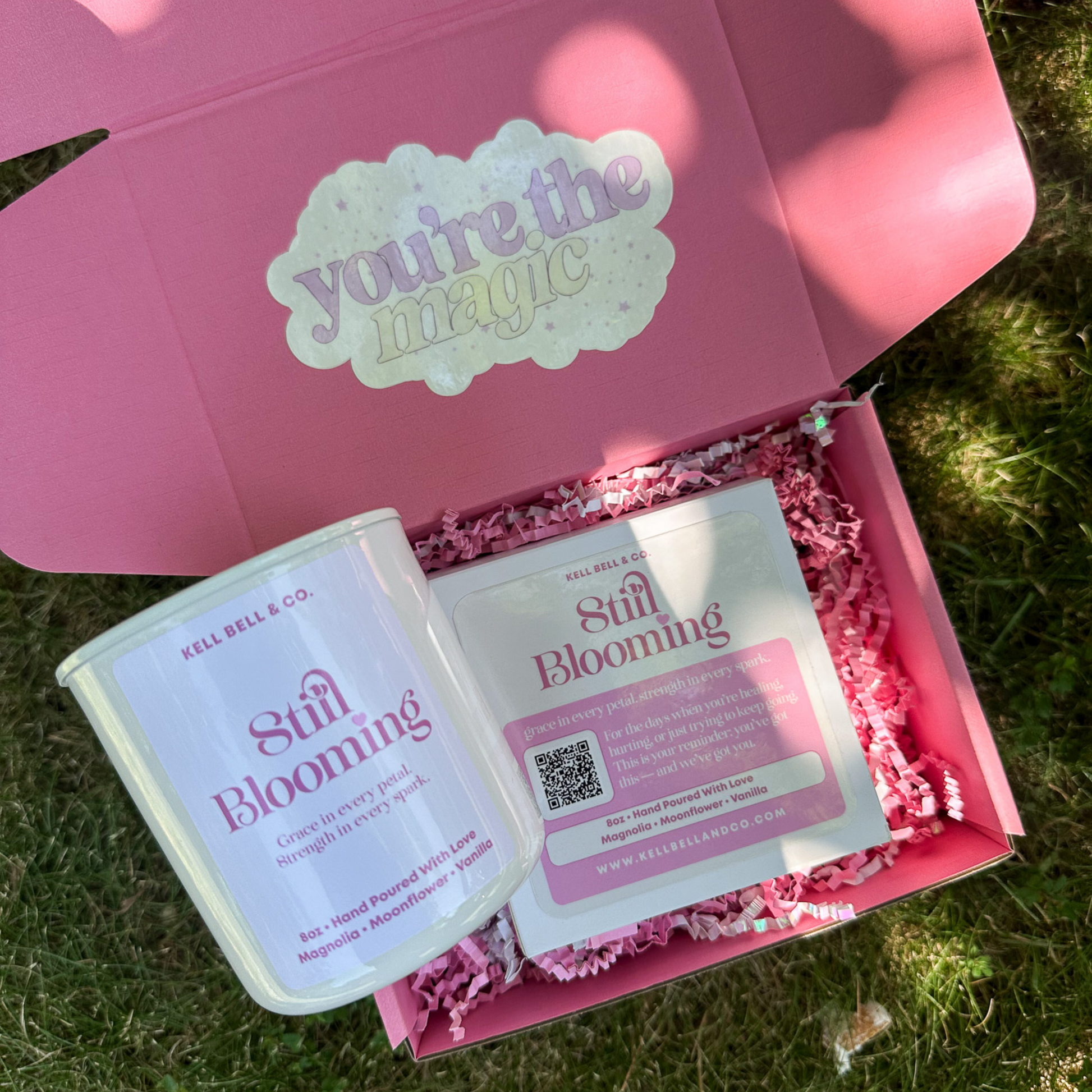 Your late-night pep talks, soft reminders to rest, and the way you somehow always know the right thing to say. Still Blooming is more than a candle—it’s a gentle nudge to keep going, paired with a cozy scent, an uplifting playlist, and a little affirmation you can hold onto.
